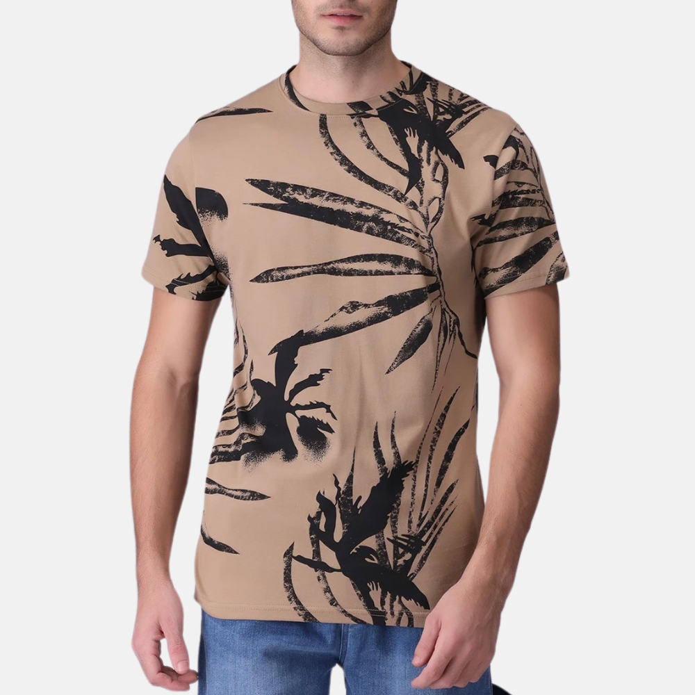 Elevate your casual style with this Latte All-Over Print T-Shirt. Designed with a ribbed crew neck and short sleeves, it features an eye-catching all-over print on soft jersey cotton fabric. Comfortable and trendy, it’s the perfect piece to add personality to your everyday wardrobe.